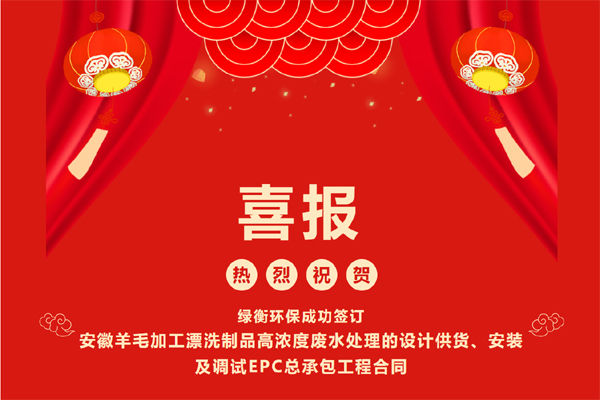 熱烈祝賀綠衡環(huán)保成功簽訂安徽羊毛加工漂洗制品高濃度廢水的設(shè)計...